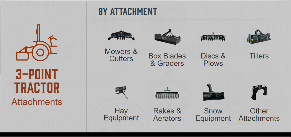 IronCraft Attachments & Implements are built for durability, performance, and versatility across a wide range of compact and utility tractors. From rotary cutters and box blades to pallet forks and grapples, IronCraft designs equipment that stands up to tough agricultural, landscaping, and property maintenance jobs. Engineered with heavy-duty steel construction, reinforced welds, and dependable components, their attachments deliver long-lasting reliability in the field. Whether you’re clearing brush, grading driveways, moving materials, or managing acreage, IronCraft provides dependable solutions that help operators work efficiently and get more done with their tractor.
